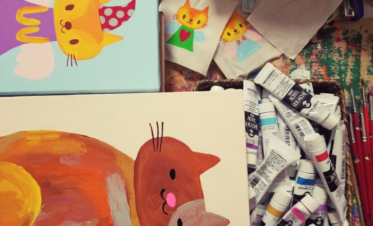 デザインフェスタギャラリーのEAST館のアートピースにて、ネコモチーフの絵を展示します。