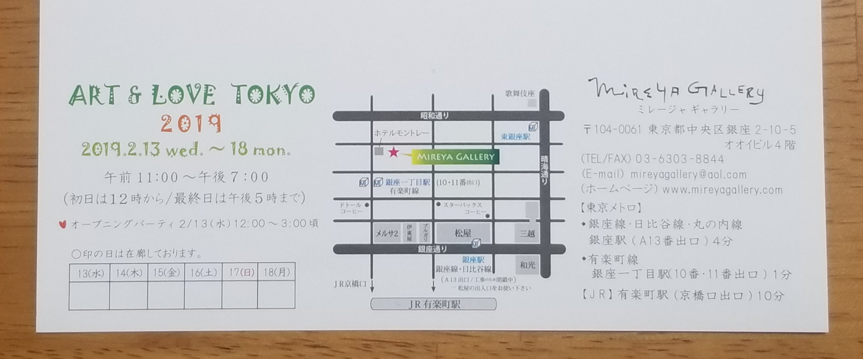 今年もミレージャギャラリーで開催されている『ART&LOVE TOKYO 2019』に参加しています。