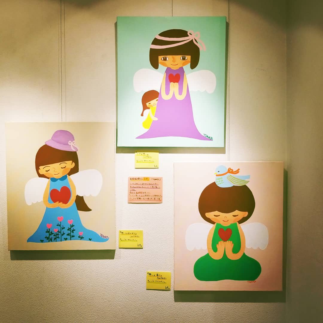 F8キャンバス、アクリルガッシュで描いています。LOVEをテーマに「想い」を込めた天使を三点出展しました。