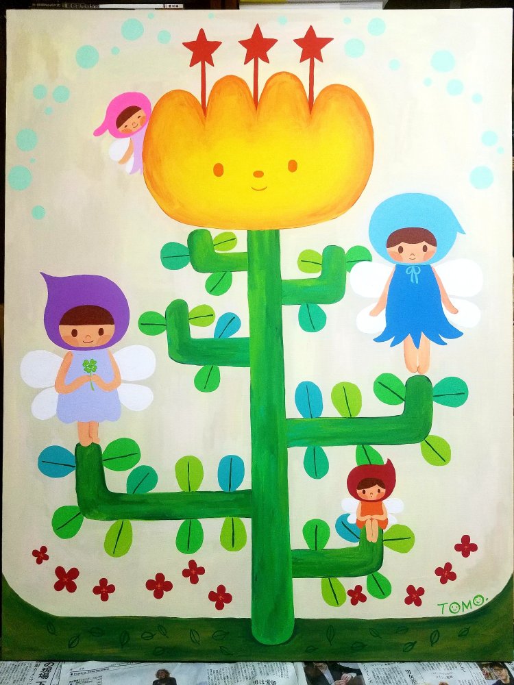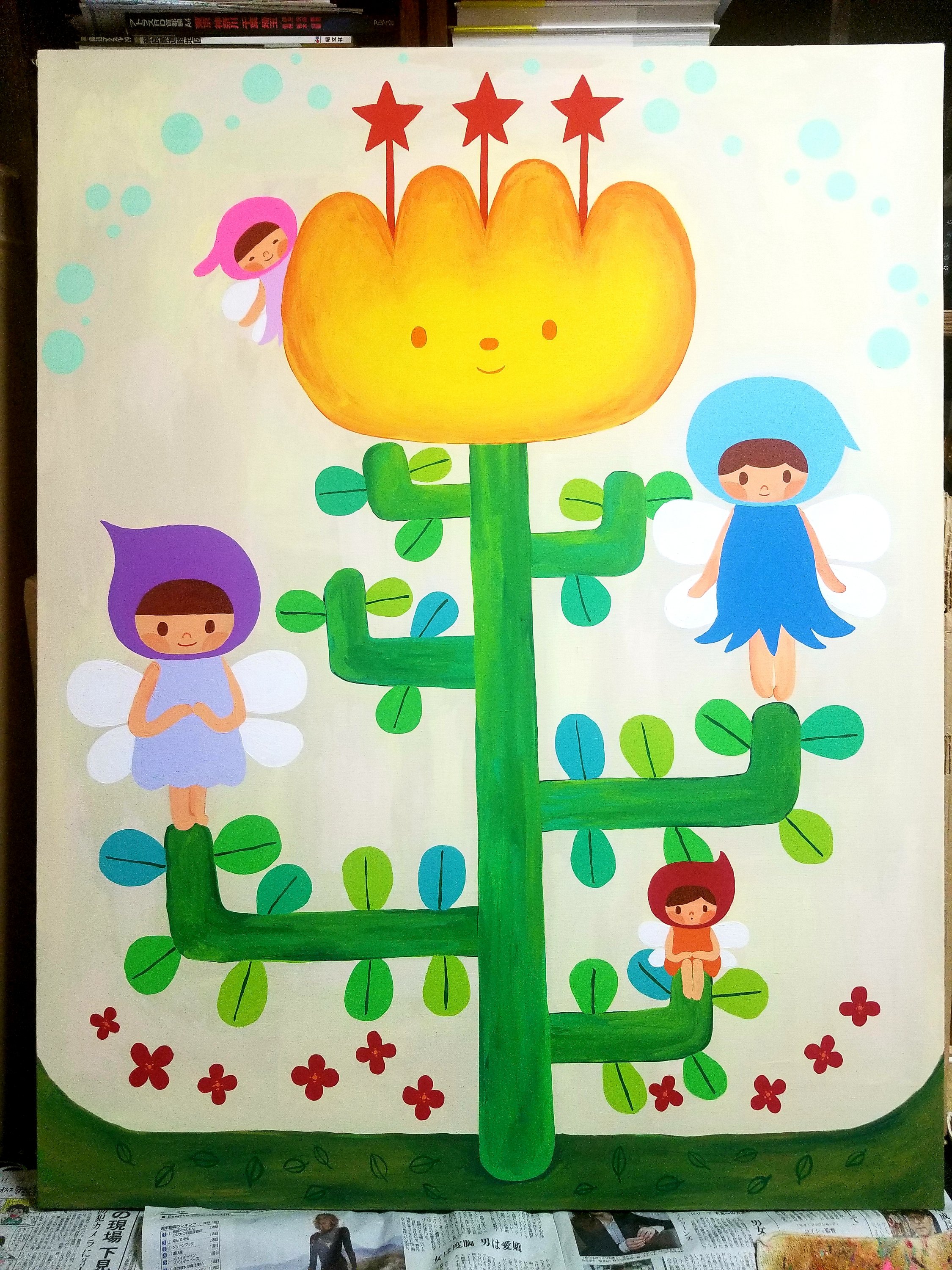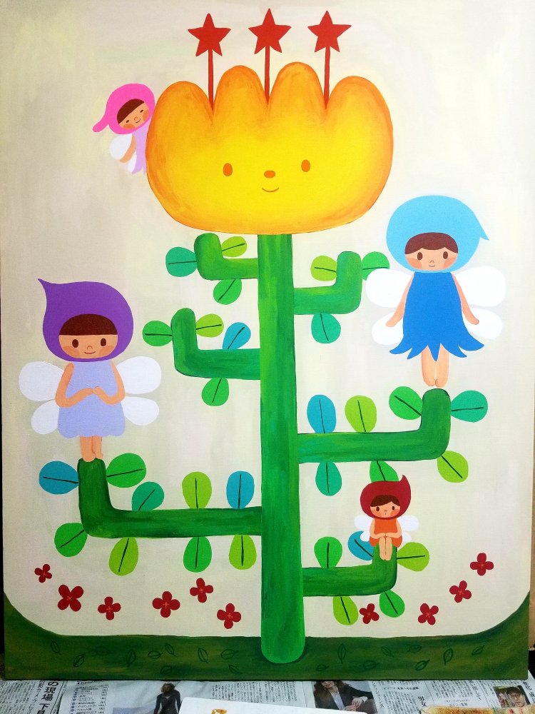 絵を客観的に確認するために写真を撮って、その画像でチェックしていたのですが、どうも、妖精の羽根のピンクが見えにくいと感じ白色に変更することにしました。