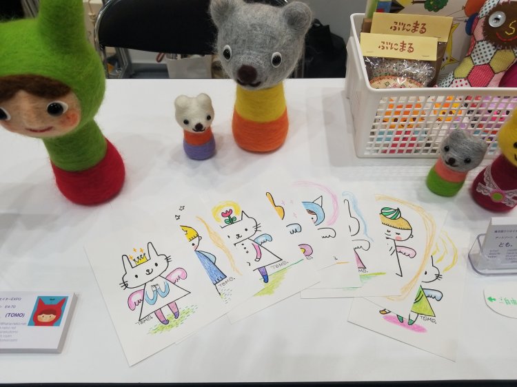 実は、普通に席にいる時はチラシや名刺を持っていってくれることは少ないのですが、ドローイングを描いている時や席を外している間に持っていってくれる方が多かったのですよね、、、私って声を掛けにくい雰囲気なのでしょうか?(笑)とにかくブースにいるとチラシ等を持っていって貰えないので、頻繁に席を離れていました。留守にしていて、話をしたいのにいない!ということになってしまった方には申し訳ありませんでした。