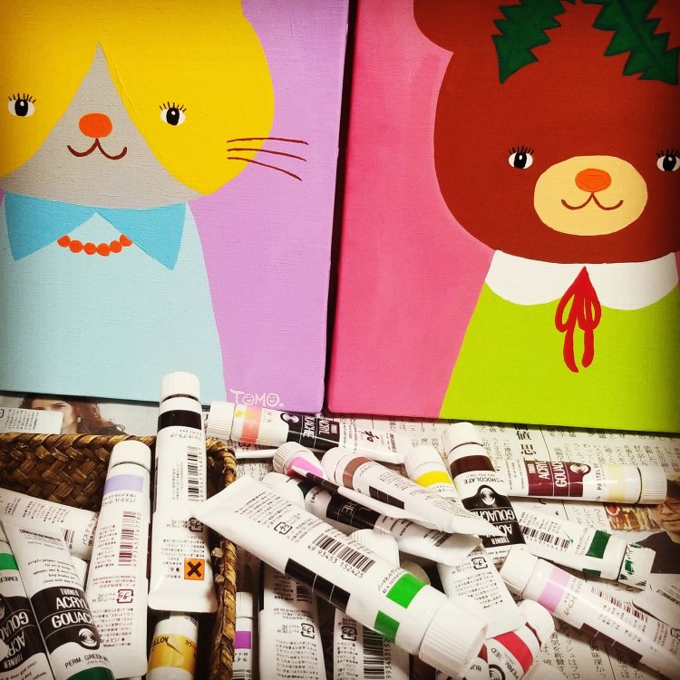 まずはブラフ18番館で開催される動物展用の作品です。出展する三点のうちの二点で、クマとネコです。三点目はこの2つにちなんだ動物にしました。