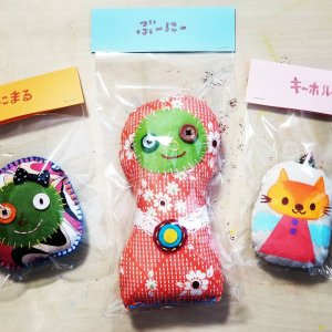 先日の記事で少し紹介した、ぶーにー、ぶにまる、とクッションキーホルダーの3種類です。