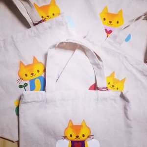 こちらはトートバッグにアクリルガッシュで手描きしています。