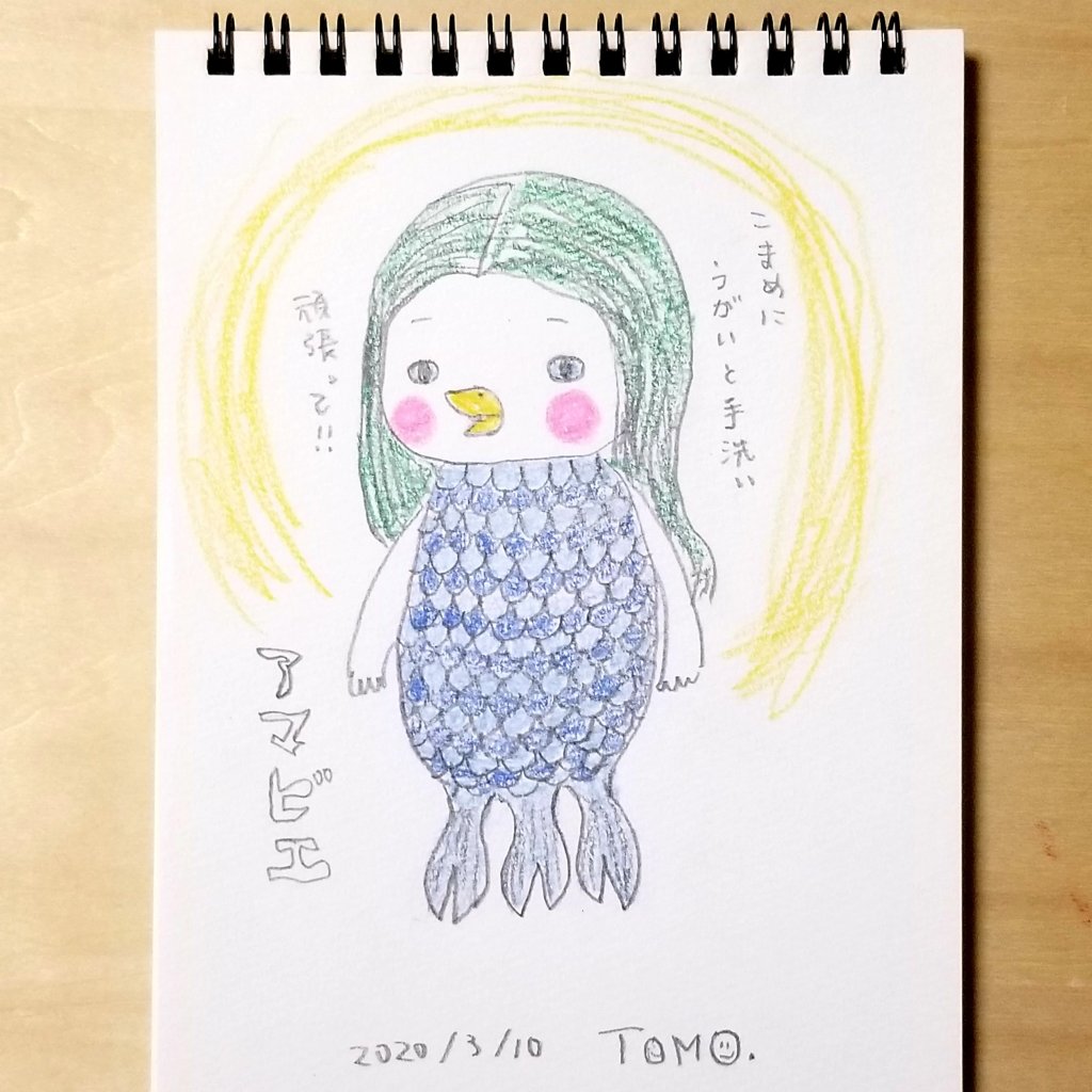 SNSで話題になっている妖怪「アマビエ」。流行り病が出た時には、その姿を描いて人々に見せるように、とお告げがあったとか。せっかくなので私も先日描いてみました。
