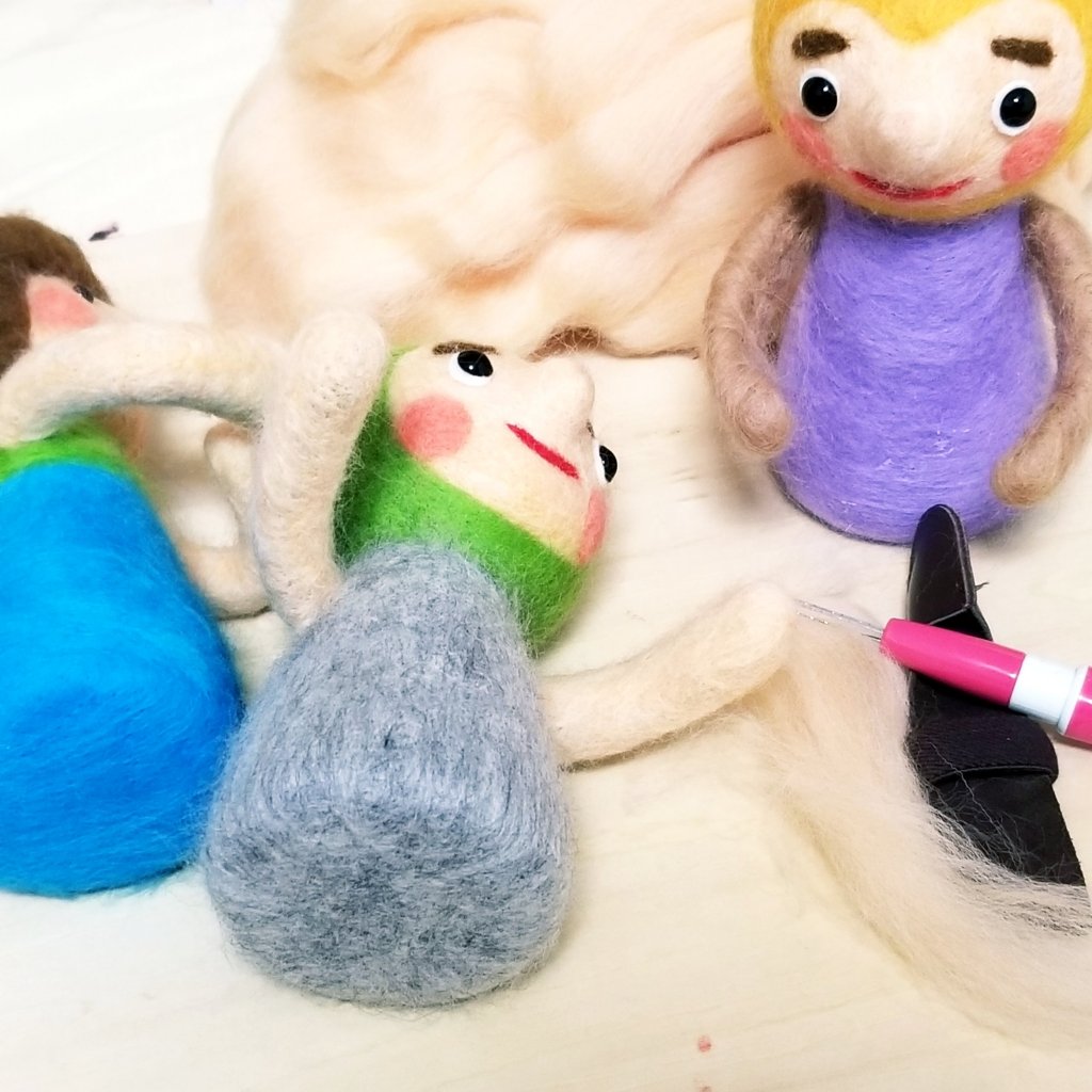 今は、先日“はっちゃん”を作り直した流れで、他の人形も手をつけ直しています。可愛くリボンやレースで飾り付けしてあったのですが、それより“手”をつけたくなってしまったので、飾りは取って、やり直すことにしました。