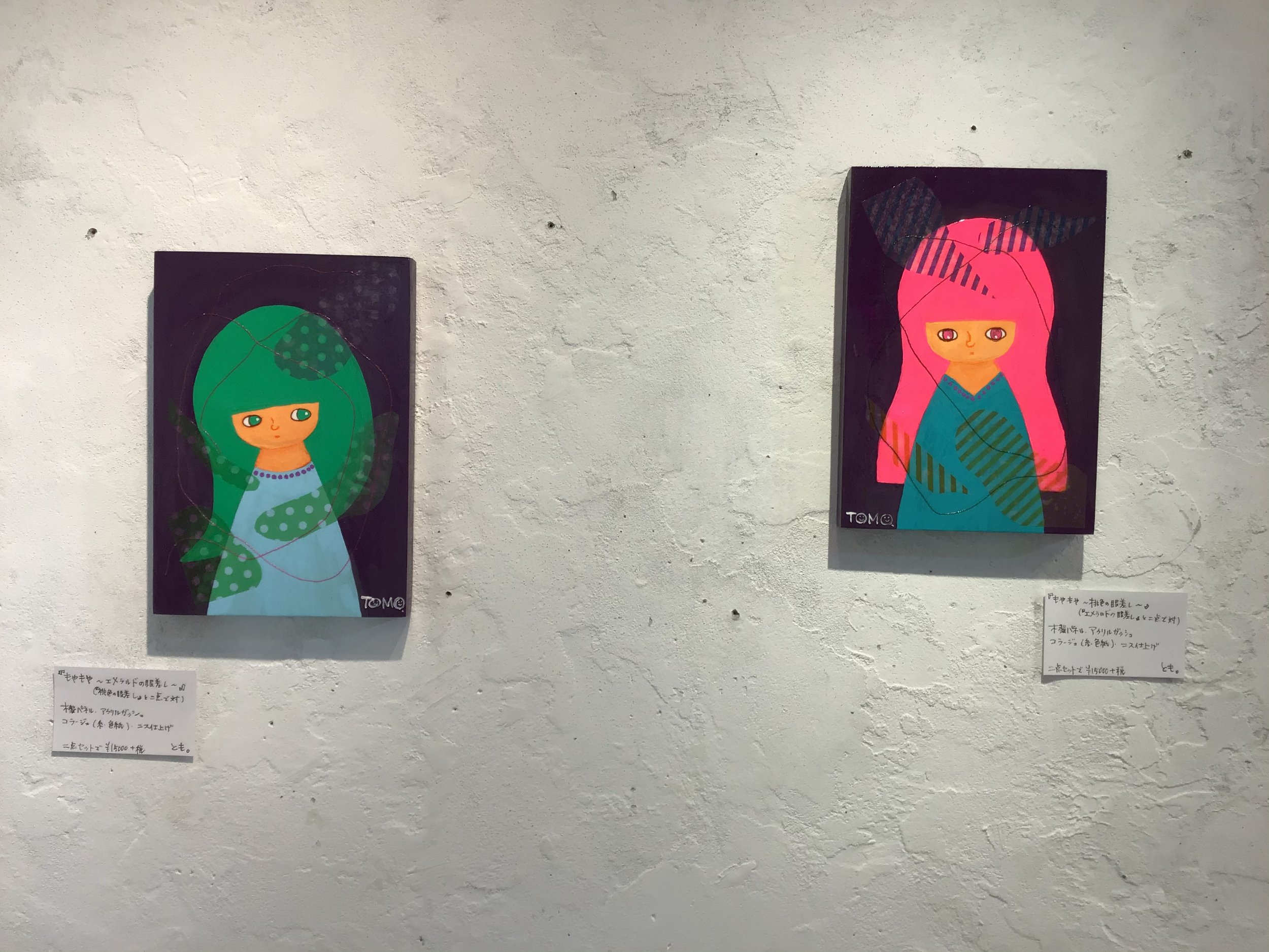 1つでは“弱い”ので、2つで1つの作品としました。共通タイトルは「もやもや」、個々のタイトルは「エメラルドの眼差し」「ピンクの眼差し」です。