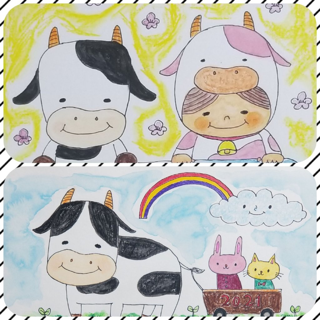 普段描き慣れていない“牛”にてこずりましたが、けっこう可愛らしく描けました。