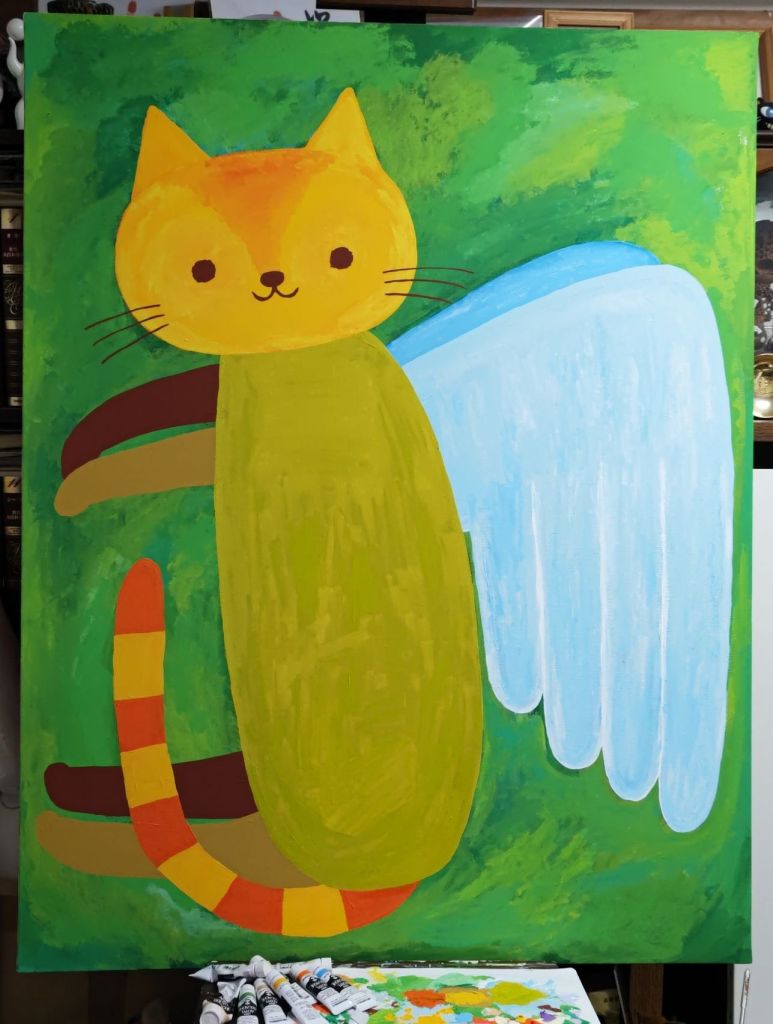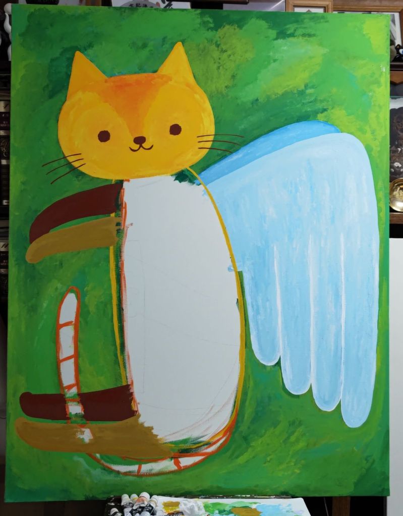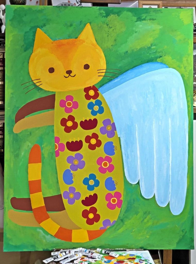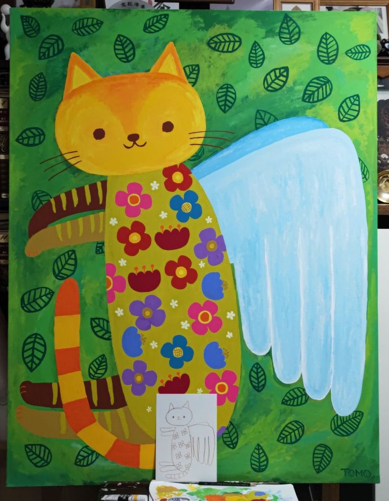 いつもはいきなりキャンバスに描き始めるのですが今回は画用紙にラフ画を描いて、それを参考にキャンバスへ描いていきました。