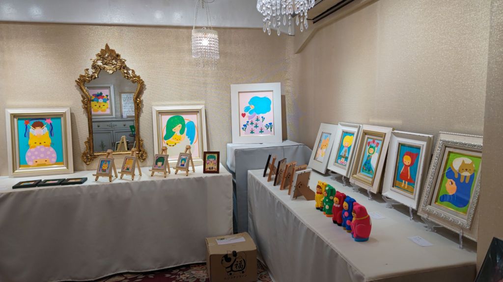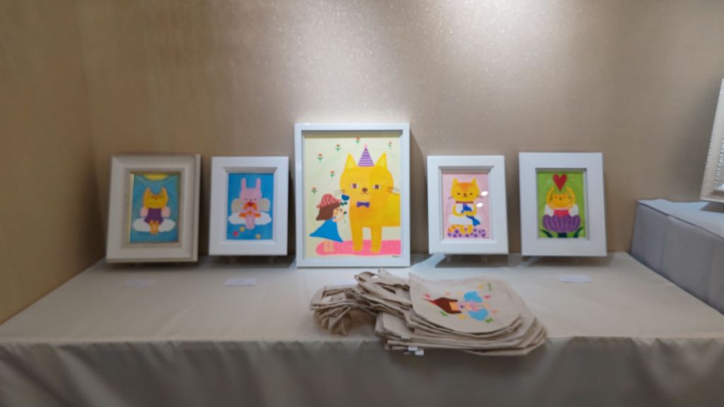 ドローイングのミニ額やトートバッグなどは「アートを身近に感じて貰いたい」という想いから制作していますが、メインのキャンバス絵の制作の合間に作業するためなかなか数が揃わないのですね。
